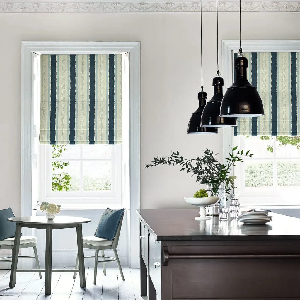About Dimity Indigo Roman Blind